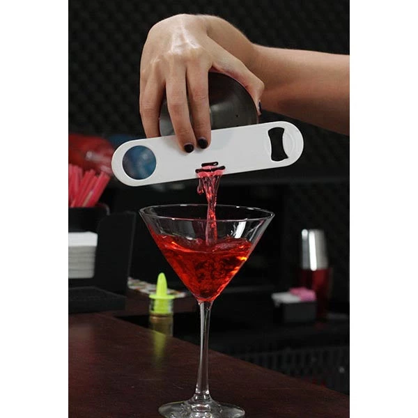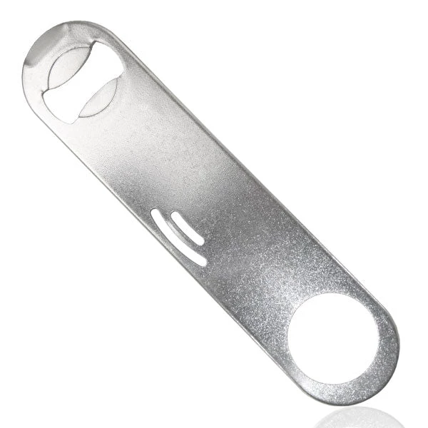 The StrainBlade® Bottle Opener is a unique bartender bottle opener that serves multiple purposes. It not only opens bottles just like our standard speed opener, but it also has an indented area for popping can tabs, and a built in cocktail strainer. This 3-in1 tool is also made of high quality Stainless Steel that will not bend or break.
