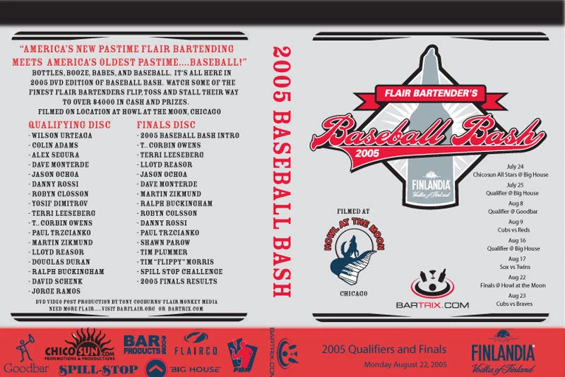 Bottles, booze, babes, and baseball. It’s all here in the 2005 DVD Edition of Baseball Bash. Watch some of the finest Flair Bartenders flip, toss, and stall their way to over $4000 in cash and prizes. Filmed on location at Howl at the Moon, Chicago. This is a 2-Disc Set. Disc 1 – Qualifiers. Disc 2 – Finals.