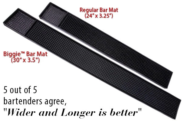 5 out of 5 bartenders agree, when it come to a bar mat “wider and longer is better”. Our Biggie™ Bar Mats are not only wider (3.5 inches), but are also longer (30 inches) than the standard bar mat (3.25 X 24) with a thickness of 1.5 cm allowing plenty of room for those big multiple drink orders. These bar mats for sale are available in black, blue, green or red.