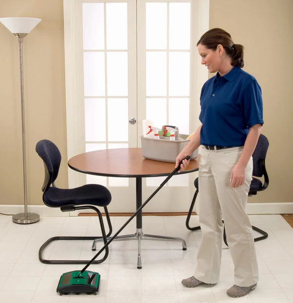 The BISSELL® BG21 Commercial Floor Sweeper is ideal for any food service establishment. This sweeper is designed to work on wet or dry messes, and has a 7.5″ cleaning path. The rubber wheels can conform to a variety of surfaces including low pile carpet and bare floors. Your front of the house staff will find these sweepers efficient and easy to use.