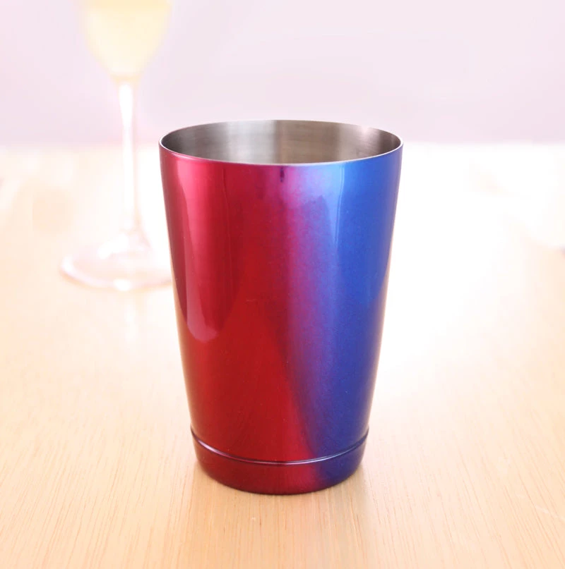 The Color Fusion Line of bar tools is a fun and unique collection that any bartender will love! This red and blue 2 toned painted job features a beautiful metallic finish. The 16 oz weighted tin (or cheater tin) is perfect for use with the 28 oz cocktail shaker tin. Mixing up cocktails or shots is a breeze with this must have tin. Our 16 oz tins are made of high stainless steel, and finished with a glossy coat that protects the metal and allows you to have a good grip while shaking.