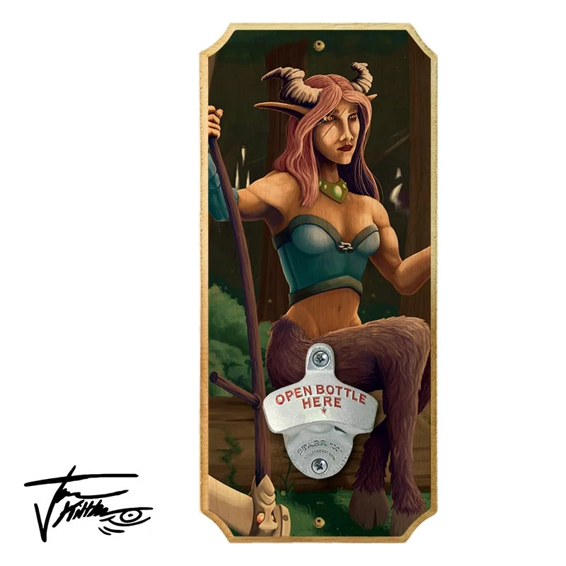 This Wall Mounted Bottle Opener with “Celyris” art from Featured Artist Jason Kilthau is the perfect way to open beer bottles in your kitchen, bar, or even on the patio! It features a durable cast iron bottle opener and has 2 pre-drilled holes so you can mount it on any wall. The art is printed directly onto the wood in bright, vivid colors, making this a bottle opener that really stands out!