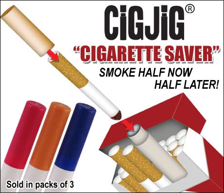 Save money, save time, and save your smokes with the CigJig® Cigarette Saver! Don’t throw away those half-smoked cigarettes, just simply put them into a CigJig® and save it for later. You don’t even need to put out the light! The airtight compartment instantly extinguishes the lit cigarette and keeps all the smell inside, keeping your pockets or pack of smokes fresh. You won’t believe how simple it works! Sold in packs of three (with three colors) or in retail packs of multicolored or all tan caps.