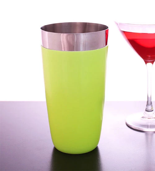 The 28oz Vinylworks™ Glow in the Dark Cocktail Shaker is a great tool for professional or home bartenders alike. This fun shaker tin features vinyl that glows brightly after it is exposed to just a little bit of light. Imagine being able to easily find your shaker in a dark bar or add a little pizzazz to your flair show. The vinyl gives this tin a great no-slip grip plus the added weighted effect of regular stainless steel weighted shaker tins.