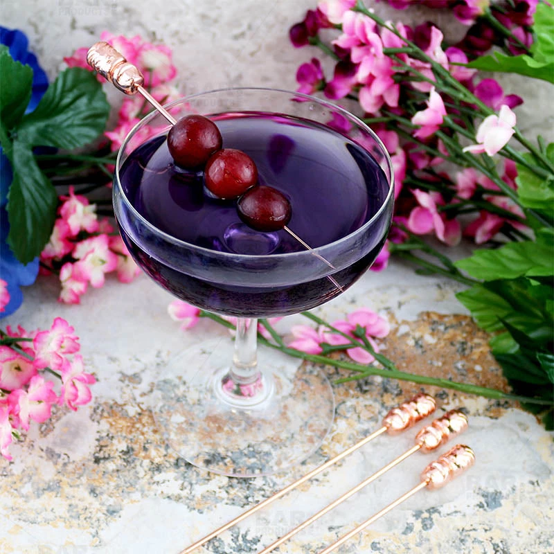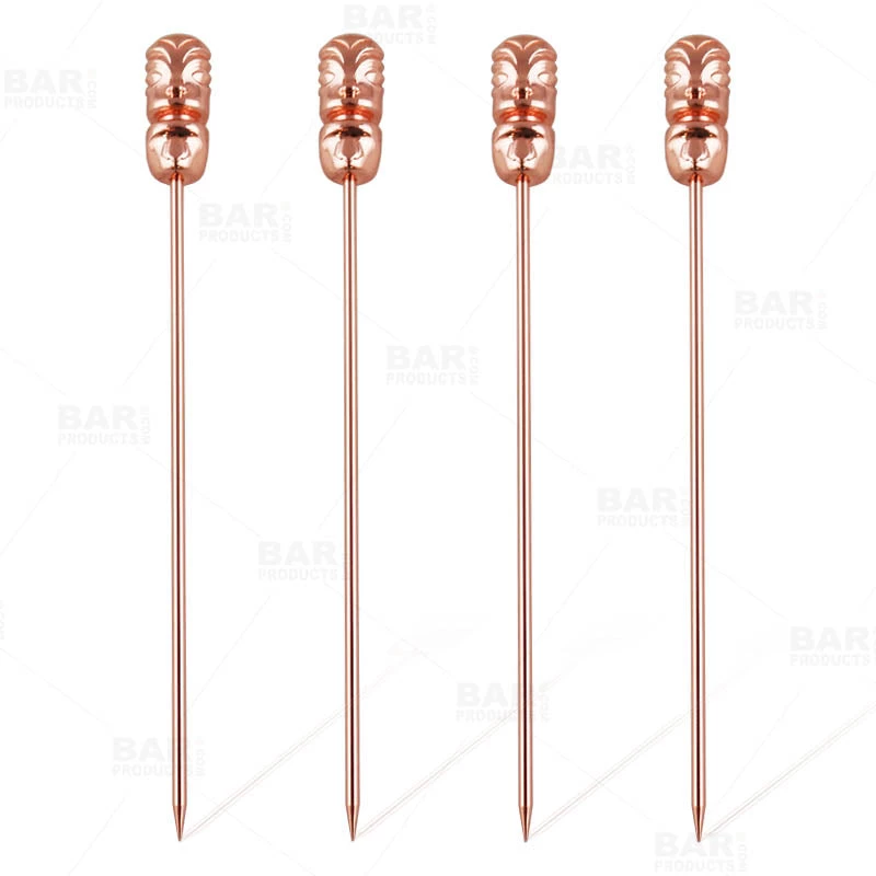Add a touch of the pacific islands along with a classy copper element to your next cocktail party. These high quality copper plated tiki-inspired cocktail picks will do just that! They are gorgeously polished with desirably detailed reflections, taking the ordinary to extraordinary. Garnish any type of cocktail with these gorgeous metal cocktail picks and impress your guests all night long. Sold in packs of 4, these cocktail picks are stainless steel with a beautiful copper plating.