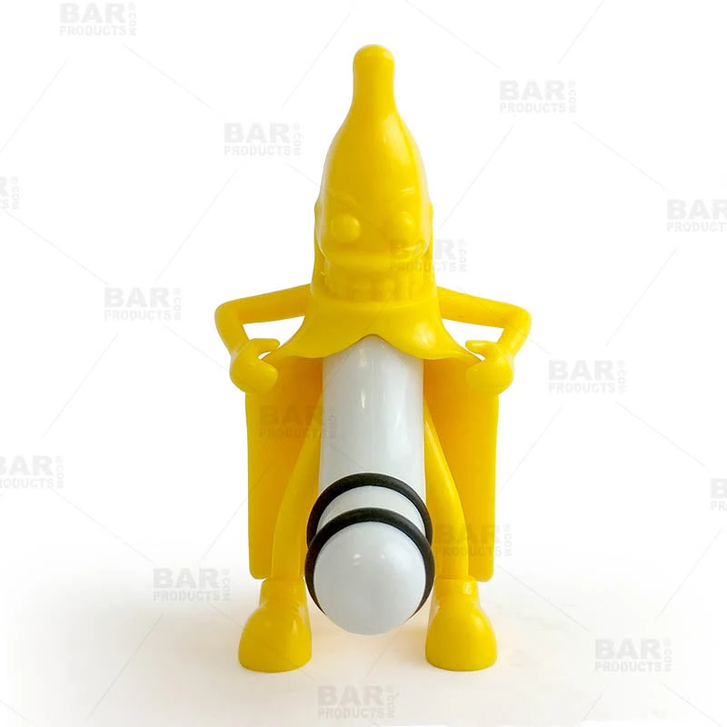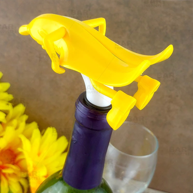 We went a little bananas with this fun novelty wine bottle stopper. Mr. Banana Man will certainly bring a few giggles at your next get together. This plastic wine stopper is designed to resemble a silly cartoon banana. Although it is a little naughty by nature, this wine stopper actually works efficiently at keeping your opened wine bottles fresh and sanitary. It is designed to fit most standard wine bottle necks and features 2 rubber bands ensuring a tight seal.