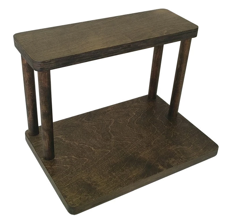 These 2 tier shelves are designed to fit perfectly underneath your cabinets. The 7.5″ tall dowel rods lift the 2nd tier up, allowing the perfect amount of space on the bottom and top tiers to hold your Barista related supplies such as mugs, sugars, creamers and other condiments.