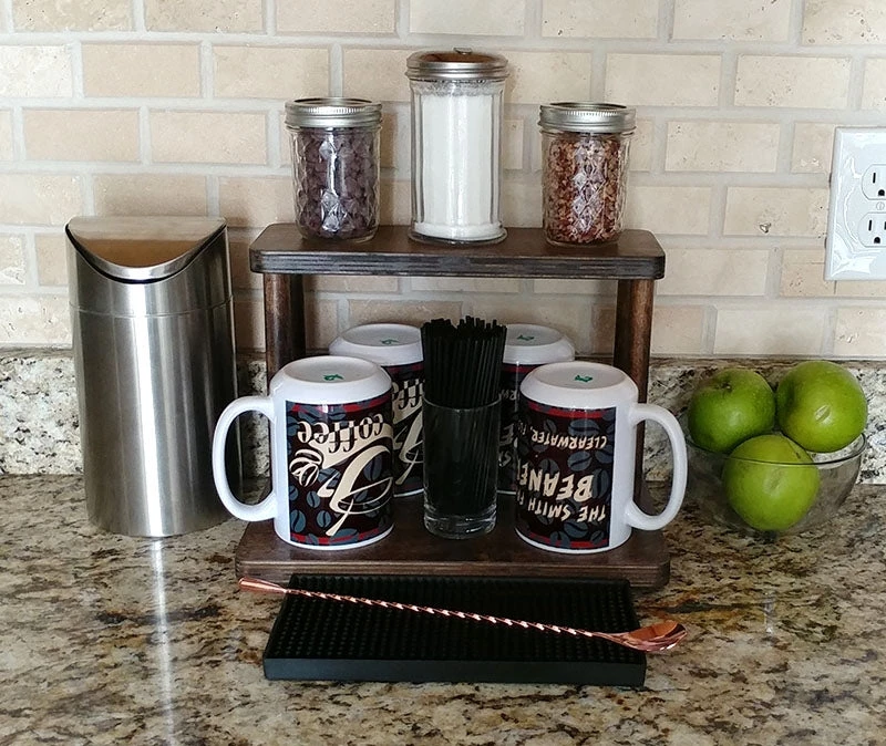 This trademarked counter caddy is designed to accommodate the home coffee connoisseur. Make your morning routine more organized and breeze through making your delightful java concoctions with this beautiful counter caddy.