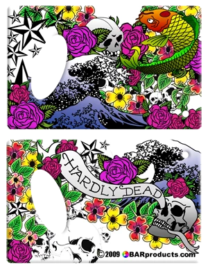 Another offering from our popular Hardly Dead⢠line of bar accessories, this tattoo fish themed credit card opener is one of the most travel friendly and colorful ways to keep a handy beer bottle tool on you at all times!