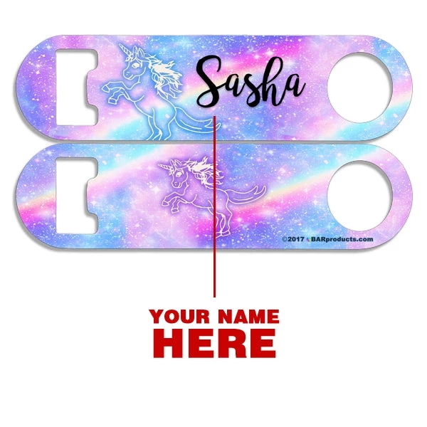 If you are someone that is a fan of our mini style speed openers then you are sure to love this Skinny Mini Bottle Opener! Choose from a large selection of fun coloful designs, such as this “Unicorn” design template that can be customized with your very own name! Simply type in your text and our design team will do the rest!