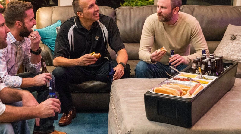 Step up your home party or tailgate game with the Deep Black Party Barge. This multi-use party barge is the perfect serving station or beverage tub for all types of gatherings and events. This handy beverage tub can be used as an ice bucket, beer or wine cooler, food display, and more! It holds hot or cold items and allows your guests to easily serve themselves. The three handy compartments can be used to hold almost anything from hot dogs to cans of beer. The compartments are even thick enough that hot and cold items can be placed right next to one another.