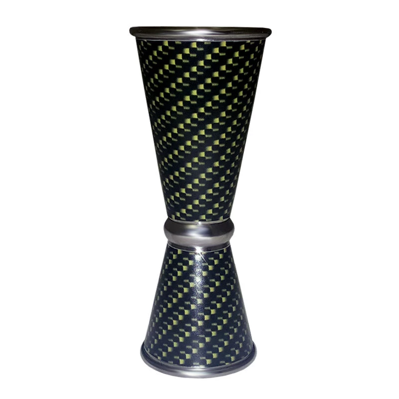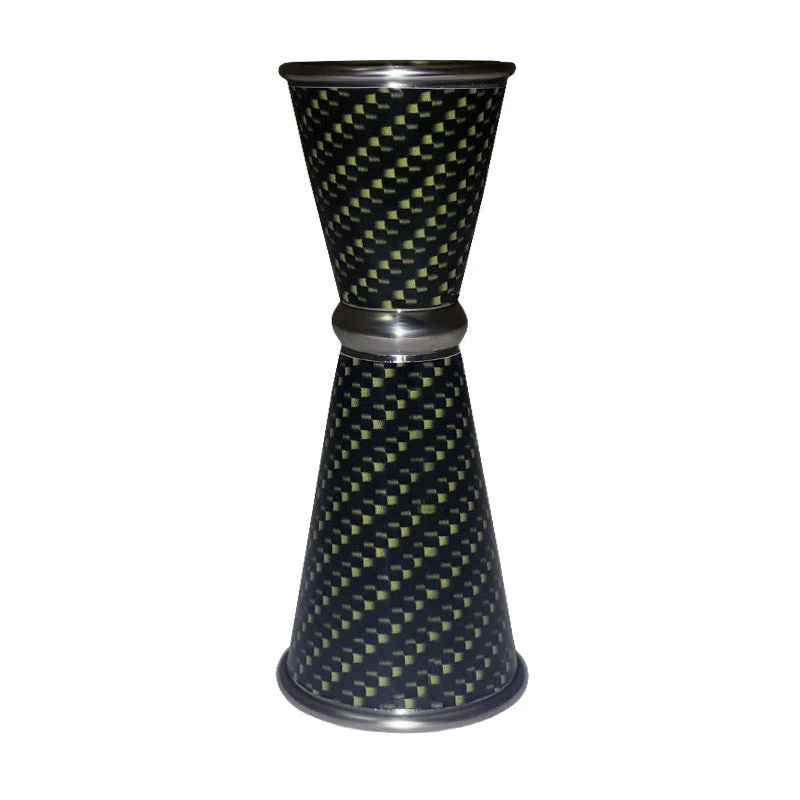 The stainless steel jigger is wrapped with high quality waterproof vinyl and will withstand common bar abuse. The full color glossy design is vibrant, and insists on being one of the main focal points behind any bar. The double-sided utility of this jigger allows for accurate 56 ml measurements as well as 28ml.