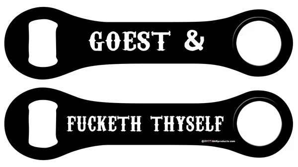 The Goest & Fucketh Thyself Dog Bone Bottle Opener features a funny design that is perfect for opening bottles of beer anytime and sending a message if necessary! Dog Bone Openers are our very own, custom designed take on the popular Speed Opener. Preferred by many bartenders, this fun style of speed opener is shaped like a Dog Bone and offers the same ease and functionality, but with a more narrow grip.