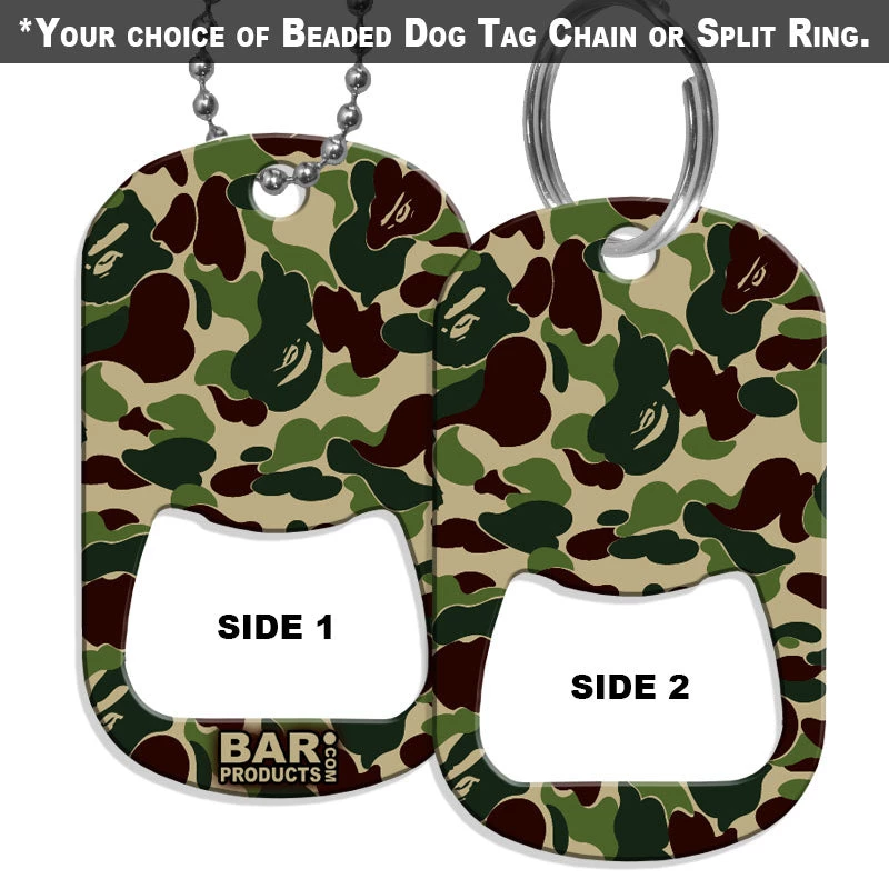 The Cool Green camouflage dog tag beer bottle opener takes the classic camo dog tag and turns it into a nifty bar accessory. This product makes a great gift for the soldier or hunter… or party goer in your life.