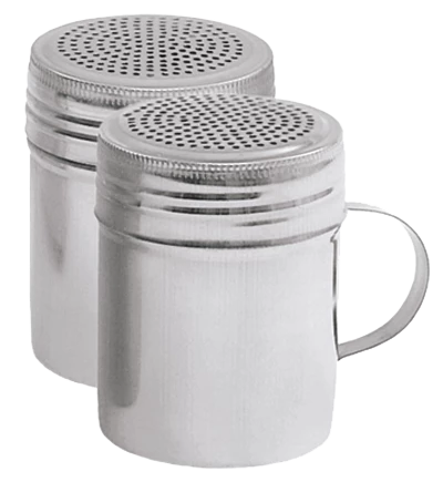 A quality Dredge with your favorite seasoning can give your culinary masterpieces more full-bodied flavor. These quality Stainless Steel Dredges hold up to 10 ounces of your favorite seasonings, and are available with or without a handle (depending on your preference). The lids are equipped with larger holes, which are excellent for heavier ingredients such as seasoned flour. The lids screw on and off for simple filling and cleaning.