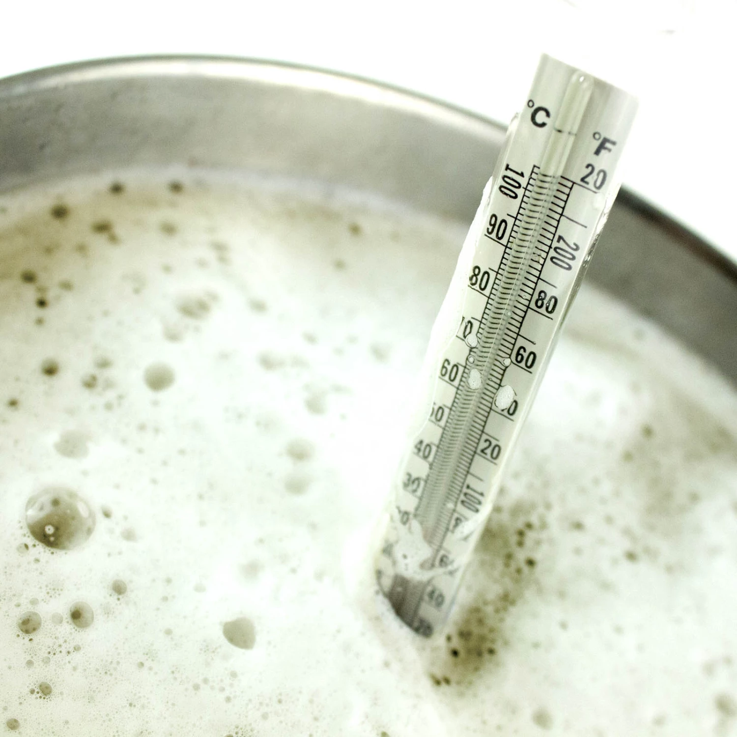 Floating glass beer thermometer is great for mashing, monitoring wort temperature for yeast pitching, and of course, making cheese. The sealed glass housing can float in liquid, making it easy to monitor the temperature.