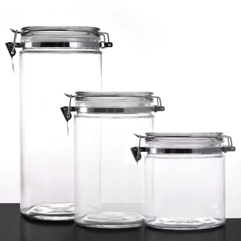 These air tight glass canisters are a lovely a way to present your ingredients and keep your herbs, sugars, salts, syrups, dried ingredients and more fresh and visible. They come in three sizes and are made with thick molded glass with a latching sealed lid.