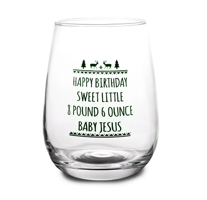 Happy Birthday Sweet Little 8 Pound 6 Ounce Baby Jesus! This hilarious wine glass is the perfect way to serve any type of spirits at your next holiday party. The shape of this glass makes it great for wine, signature cocktails, or even craft beers! Make sure you have the best wine glasses this Christmas Season. Cause “If you ain’t first, you’re last.” — Ricky Bobby