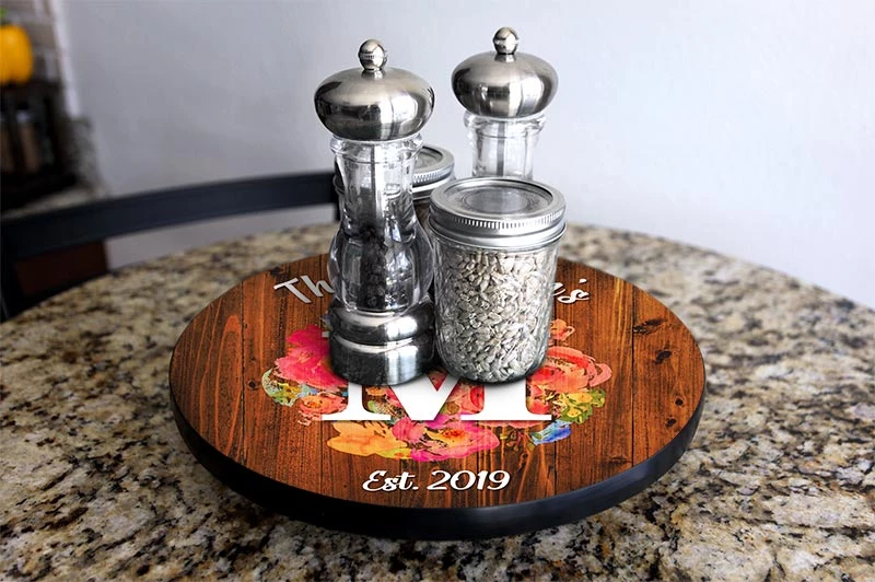Looking to attract more attention to your dining area or kitchen? Looking for the perfect gift idea for your spouse, or for another family member or friend? You can personalize a wooden table top Lazy Susan and surprise everyone! Made out of Baltic birch wood right here in the USA, our table top Lazy Susans are the perfect way to add more fun to your home.