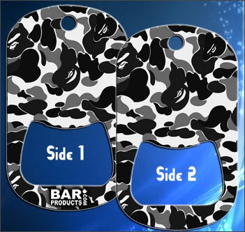 This busy black and white camo Dog Tag bottle opener make aa great gift for him or her. The dark and light tones work with just about anything, and will surely grab attention at your next party. Beachgoers and outdoor lovers like these openers for handy access with style.