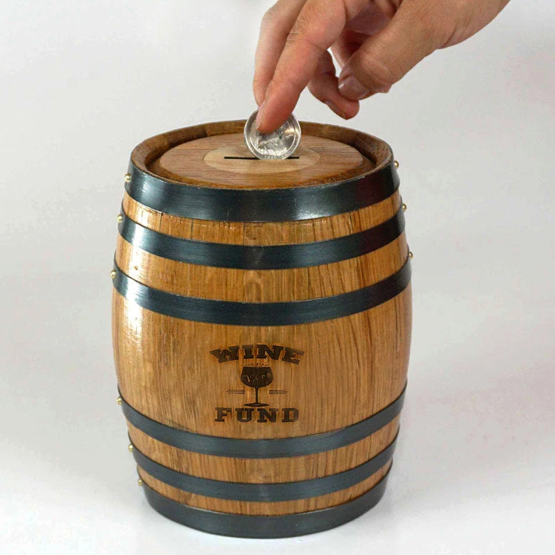 - Mini Oak Barrel Piggy Bank