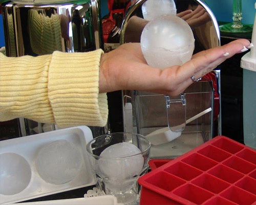 Now you can make your own ice balls in the comfort of your home (or restaurant!). Spheres of ice are preferred because the smaller surface area means the ice melts slower, keeping drinks cold without becoming too diluted. Keep a large bowl in your freezer and make several ahead of time. You can also freeze herbs, flowers, candies, etc. inside. Or freeze juices and use the balls to keep a punch bowl cold. It’s unlimited to your imagination!