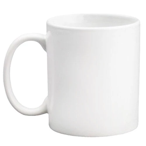 This white ceramic coffee mug holds 11oz of steaming hot coffee, hot tea or other hot beverages. This coffee mug is durable, tough and easy to clean. It features a strong handle and straight walled sides for a classic coffee cup look.
