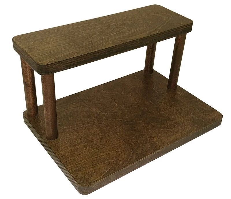 These 2 tier shelves are designed to fit perfectly on your counter underneath your cabinets, while still being able to easily access common spices and other ingredients. They are handcrafted in the USA, right here in our very own BPC woodshop. Counter Caddy Straight Shelves are constructed from a durable wood material with 4 secure 5.75″H dowel rods. This particular shelf features a smooth stained finish that easily wipes clean. They are also sold with rubber feet on the bottom, giving the shelf a bit of a raise from your counter while protecting it from scratches and bacteria build up.
