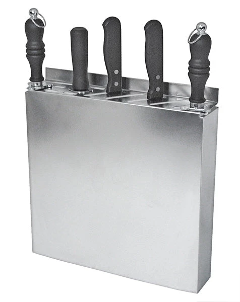 This durable professional knife rack holds up to 19 knives. Built of 18/8 sturdy stainless steel, it is fully soldered and uses thicker wire. Great for professional kitchens, hotels, diners and bars.