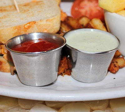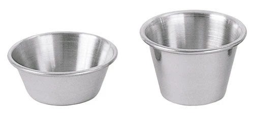 These stainless steel sauce cups are easy to clean and maintain, and are great for a variety of sauces, condiments, dippers, and more. They come available in two sizes: 1.5 oz and 2.5 oz.