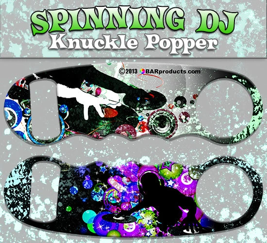 The Spinning DJ Knuckle Popper Opener is perfect for anyone who has a love and appreciation of music. This opener embodies the feel and excitement of spinning records and being a DJ.