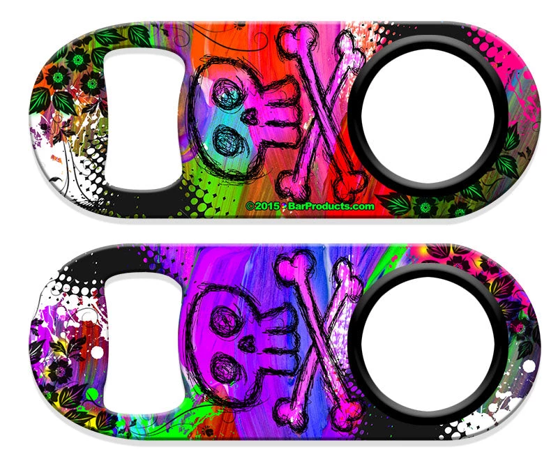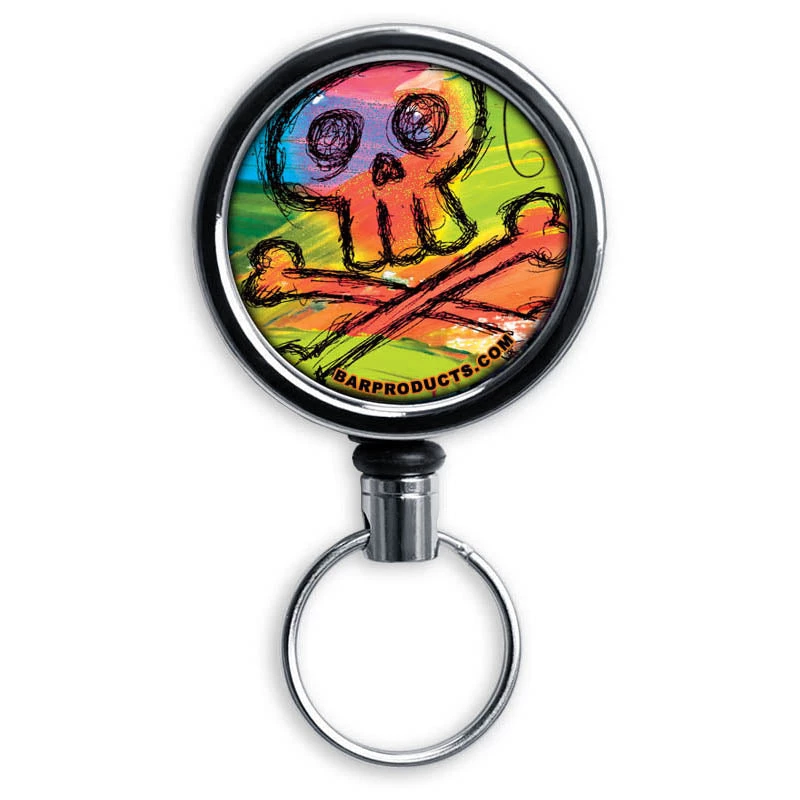 Clip your bottle opener practically anywhere for quick, convenient access… and do it with style! Showcasing a full color Skull and Crossbones design, we have tastefully decorated our trendy mini bottle opener to match this quality retractable reel. Clip it to your belt, pants, pocket, purse or anywhere else you can think it would come in useful. Don’t miss out on the price break when bought as a set, or purchase them separately to mix and match. This retractable reel also works in conjunction with our other bottle opener styles!