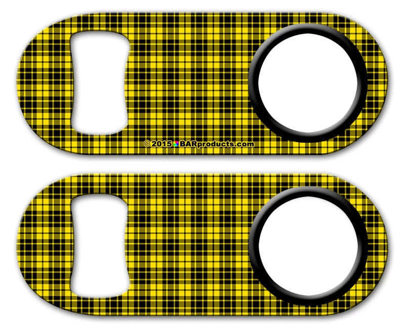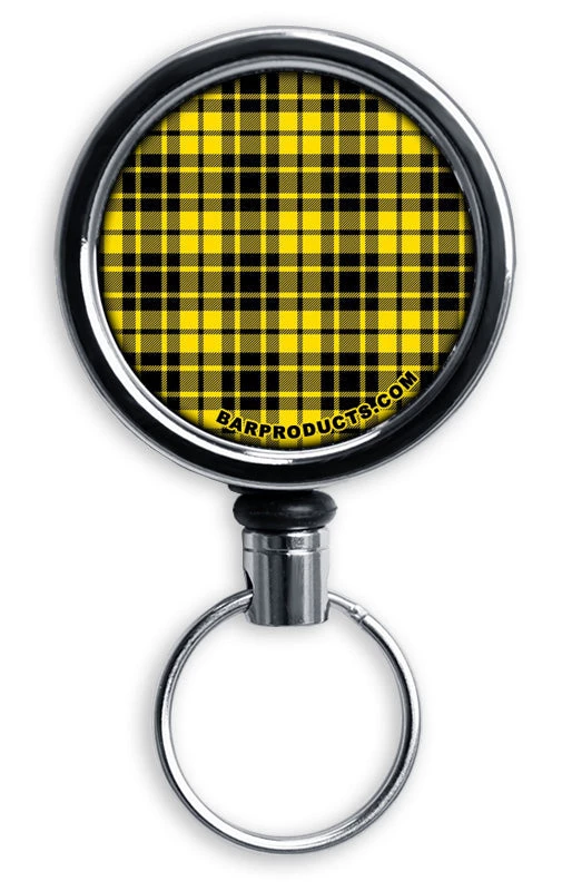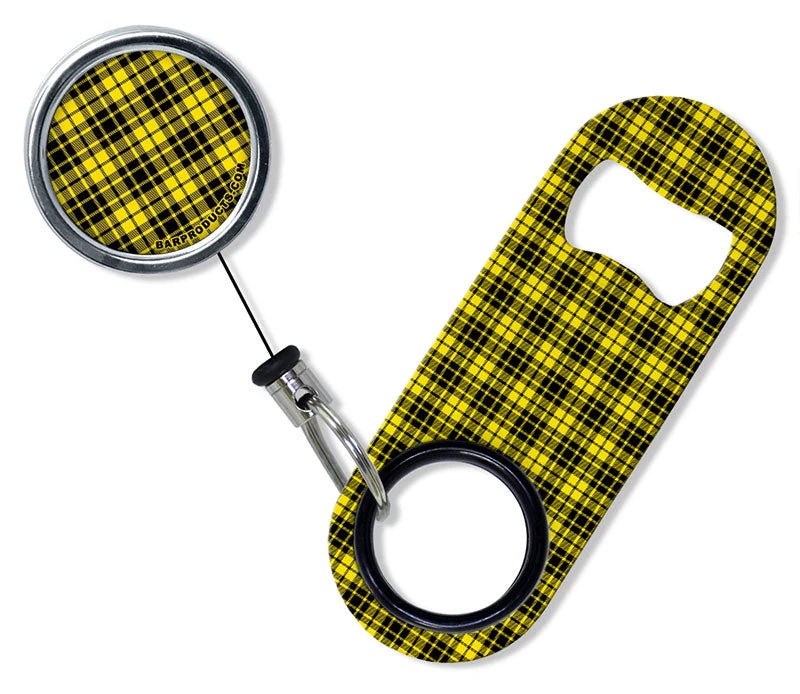 Clip your bottle opener practically anywhere for quick, convenient access… and do it with style! Showcasing a full color Yellow Plaid design, we have tastefully decorated our trendy mini bottle opener to match this quality retractable reel. Clip it to your belt, pants, pocket, purse or anywhere else you can think it would come in useful. Don’t miss out on the price break when bought as a set, or purchase them separately to mix and match. This retractable reel also works in conjunction with our other bottle opener styles!