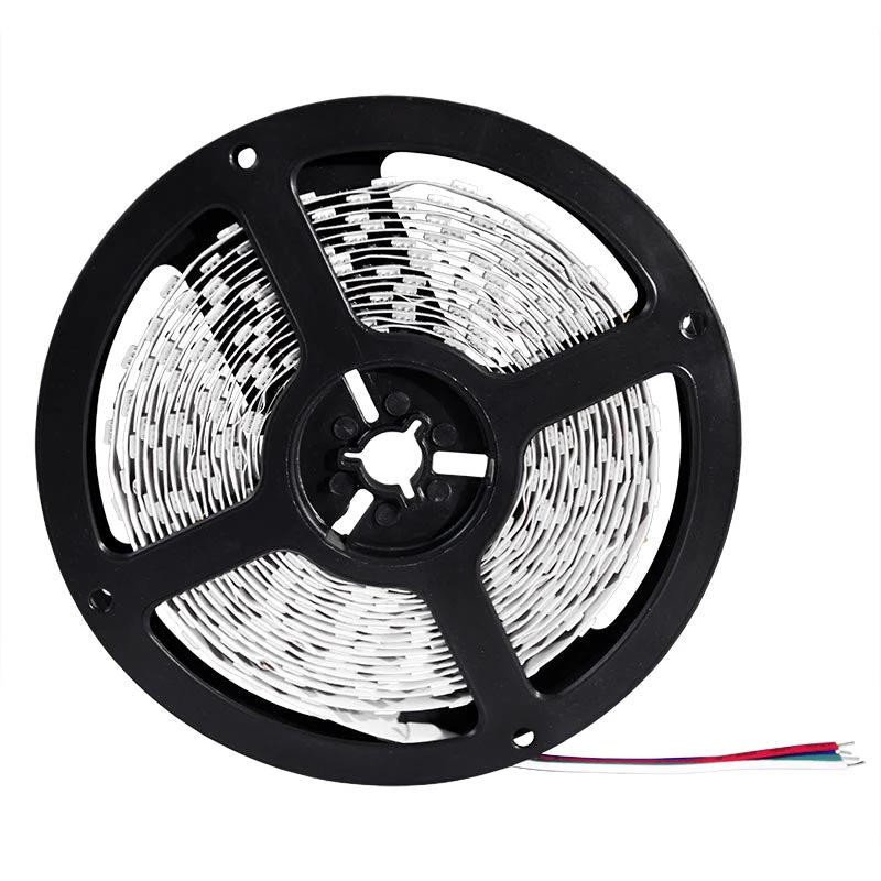 Included in the kit are a 5 meter/16.4 FT long LED 5050 IP65 Light Strip (10mm). The strip has an adhesive backing allowing for easy application. The LED lights are SMD 5050 (meaning 5mm x 5mm chips) which produce the brightest lights found in LED strips. This 16.4 foot (5 meter) roll features 18 LEDs per foot.