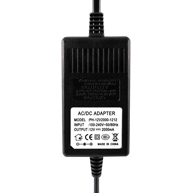 - Includes adapter. Input: AC100-240V 50/60Hz; Output: DC 12V 2A 24W
