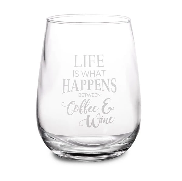 Life is What Happens Between Coffee & Wine! We have to agree with this statement! If you love coffee and wine, then this glass is for you. The shape of this glass makes it great for wine, signature cocktails, or even craft beers.