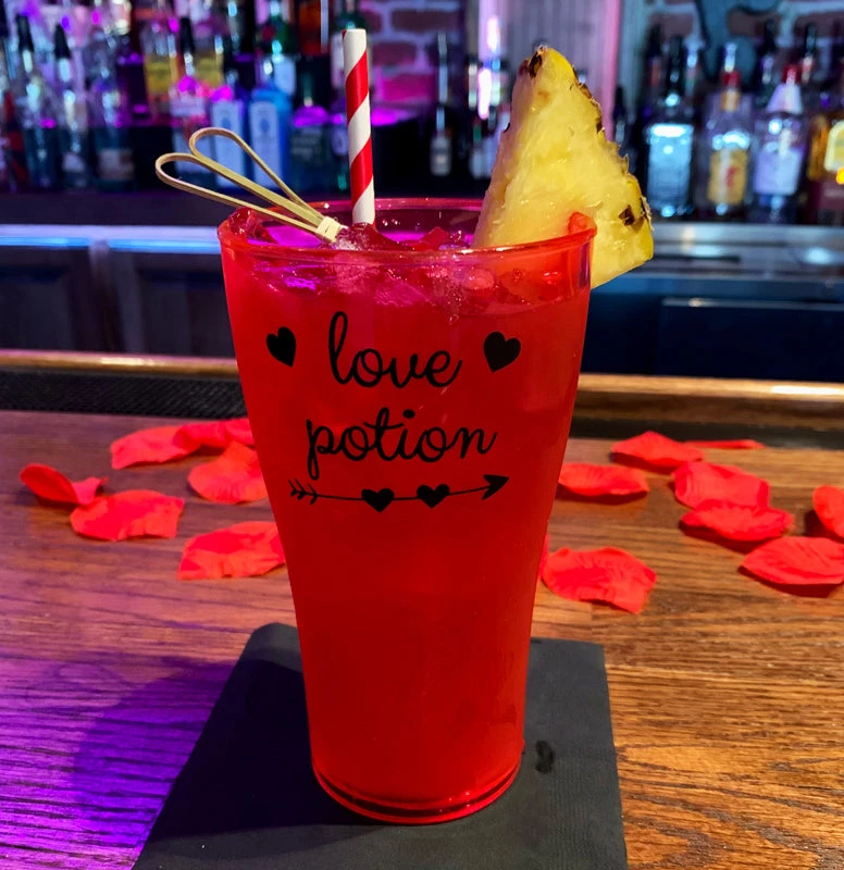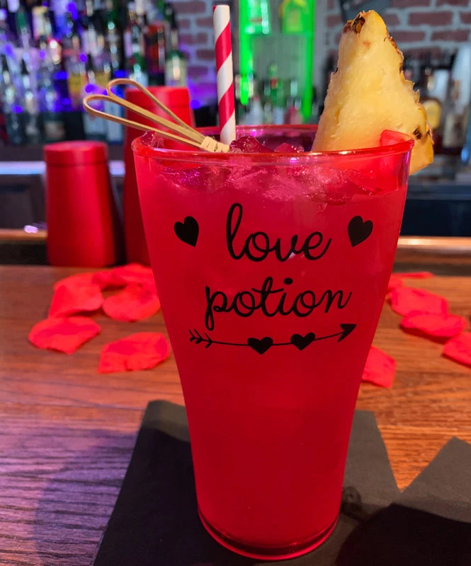 Not only are these adorable Love Potion neon pink polycarb cups perfect for this year’s Valentine’s Day celebrations, but they are also indestructible, washable, and reusable… making them readily available for many years to come. Anyone would love being served their cocktail or beverage in these fun themed glasses. Perfect for all ages! This cup is neon and will glow under a black light. Holds 570ml (19.27oz)