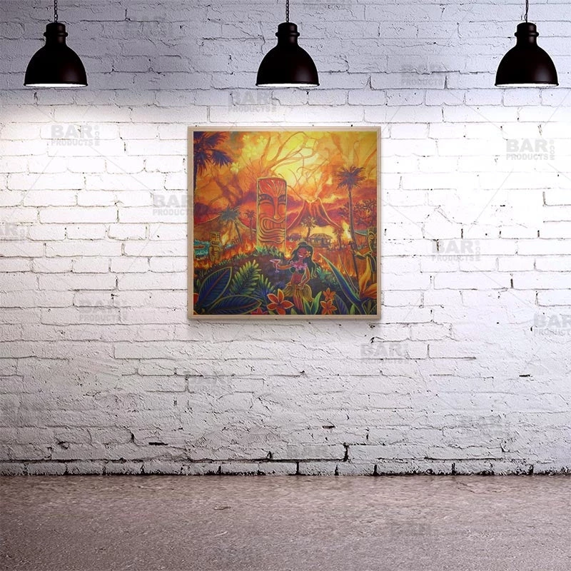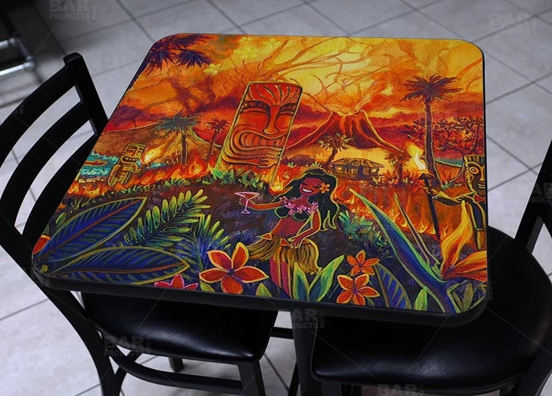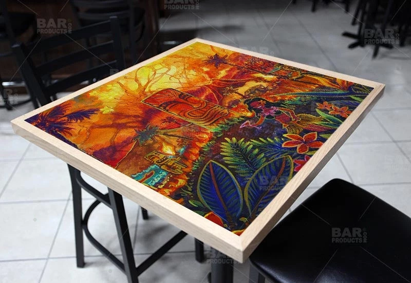 This delightful piece will look amazing used as a table top in your tiki bar or restaurant or even at home in your man cave or outdoor bar. Restaurant and bar patrons will be impressed by the full color art print. The colors are so vibrant and gorgeous that you can even hang it on your wall for display!