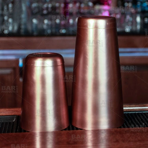 The BarConic® 16 ounce Cocktail Shaker with antique copper finish is the perfect “cheater tin” or shaker cap to work on conjunction with the common 28 ounce shaker. This cheater tin features a weighted base for stability, and is commonly used by mixologists or flair bartenders when paired with other tins and mixing glasses, meant for rapid and efficient use. The copper material and antique finishing makes this shaker an exceptional piece with professional quality you can see and feel.