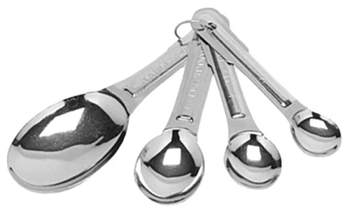 This is a great versatile measuring spoon set every kitchen needs. Metal and easy to clean, it is priced to fit any budget and includes four common measurements.