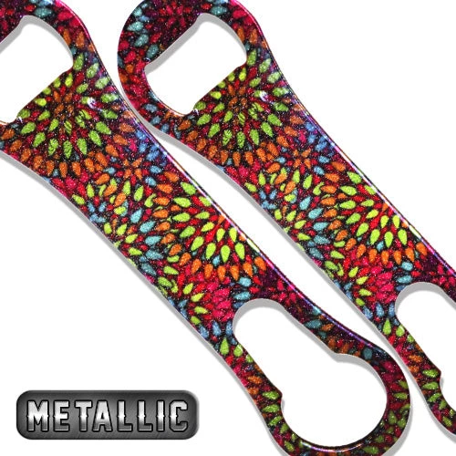 The fun Hippie Flowers design is ideal for any bartender, and makes a perfect gift for any occasion. It features a colorful flower pattern that almost looks like fireworks in the night sky! Using our V-Rods® bottle openers is a super easy way to quickly pop caps off any beer bottle, and they have a notch in the end that allows you to remove pour spouts out of liquor bottles. The opener itself is made of high quality stainless steel, and is almost impossible to bend or break.