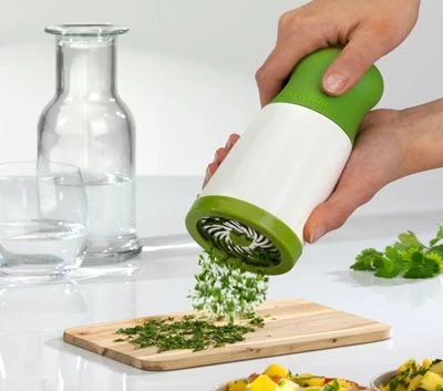 The Microplane® Herb Mill is built for ease and speed—not to mention sleek, attractive design—in mind. It easily chops your fresh herbs with just a simple twist of the hand for a variety of purposes, from cooking, seasoning, presentation, and for extravagant cocktail recipes. Works great with mint, parsley, dills, cilantro, and a host of other popular herb varieties. The patented, surgical stainless steel blades cut with ultra-sharp precision to reduce bruised and wilted ends. It’s dishwasher safe and looks great in any home or professional kitchen or bar. Measures 6.75″ in height.