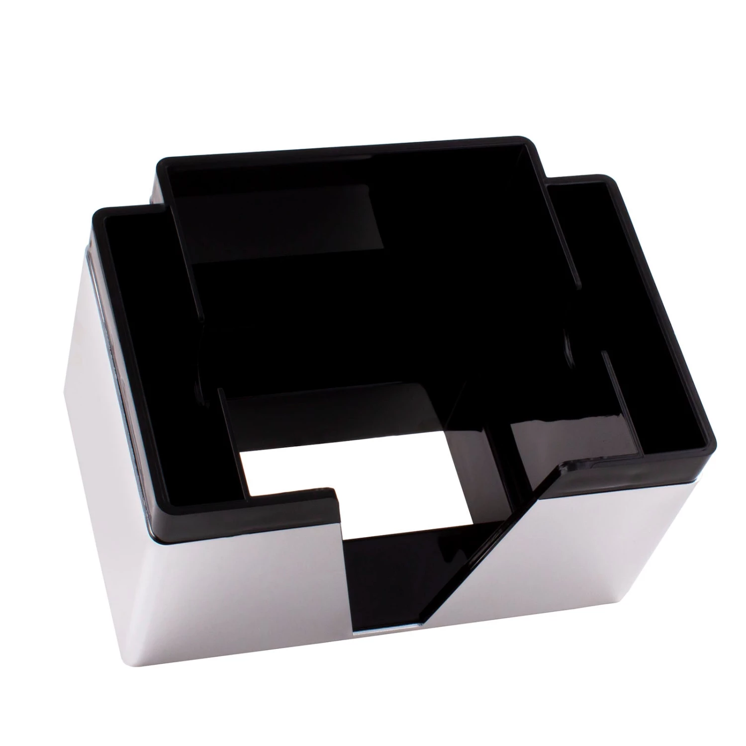 The BarConic® 3 compartment caddy is an economical way to keep your bar tops organized. The foot is designed to fit on a drink rail. The center fits standard bev naps (cocktail napkins) and the side two pockets can accommodate straws, picks, stirrers, and more. This is a standard accessory for any bar. This caddy features a beautiful chrome reflective outside and a solid black inside. It is made of hard sturdy plastic and measures 5.75″ L x 7.75″ W x 5.25″H. Napkins and refill products are sold separately.