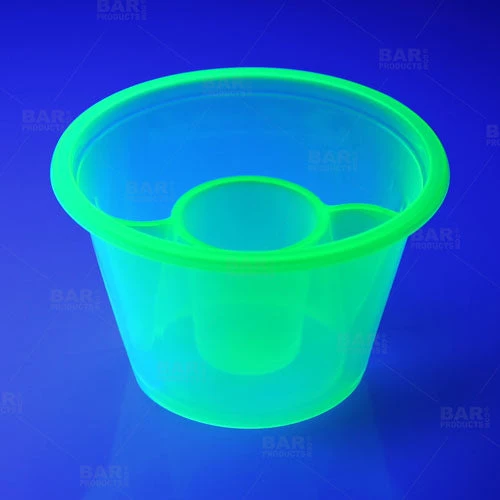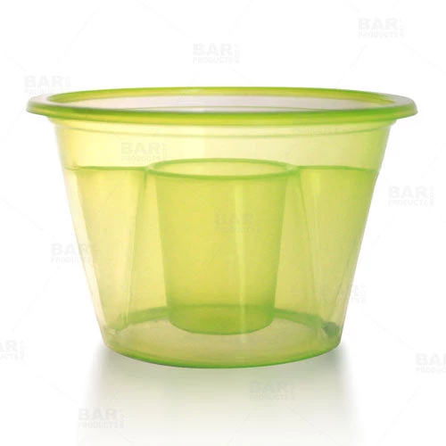 These exciting new 3 Chamber Neon Green Bomb SHOTZ® are the new way to serve up shooters that will have everyone talking! The patented 3 Chamber Bomb SHOTZ® provide a new twist on the previously popular Jager Bomb shots; with three chambers for endless liquor and chaser combinations. The three chambers molded into plastic dividers, keeping each liquor and/or chaser separate until consumed. Traditional bomb shots are wasteful with a lot of cleanup and can increase your chance of breaking glass. These Bomb SHOTZ® are small, lightweight, plastic and disposable- perfect for serving up shots all while showcasing the shot ingredients in a fun, eye-catching way.