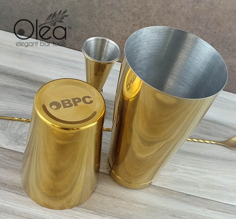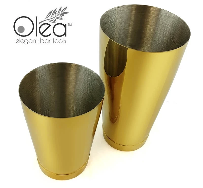 Absolutely exquisite are the perfect words to describe this stunning Gold Plated 2 piece Shaker Set. A collection of many first editions of our line of Olea™ Elegant Bar Tools, this bar shaker set is every master mixologists and professional bartenders dream bartending kit. The high quality pieces are constructed from a durable stainless steel material and then beautifully plated with a reflective Gold finish.