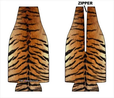 The amazing detail of this tiger pattern bottle Cooler is so realistic, that people are going to want to pet your beer. If you are a fan of sexy animal prints, then this tiger pattern is a must-have in your collection. The neoprene material used to construct this Cooler and the build in zipper feature makes this beer Cooler cool, convenient… and sexy!