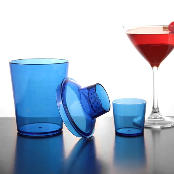 Save your arms with these lightweight colorful 3 piece plastic cocktail shakers, an essential piece of bar equipment. These plastic shakers hold up to 18 ounces and are available in four colors: red, clear, blue and smoke.