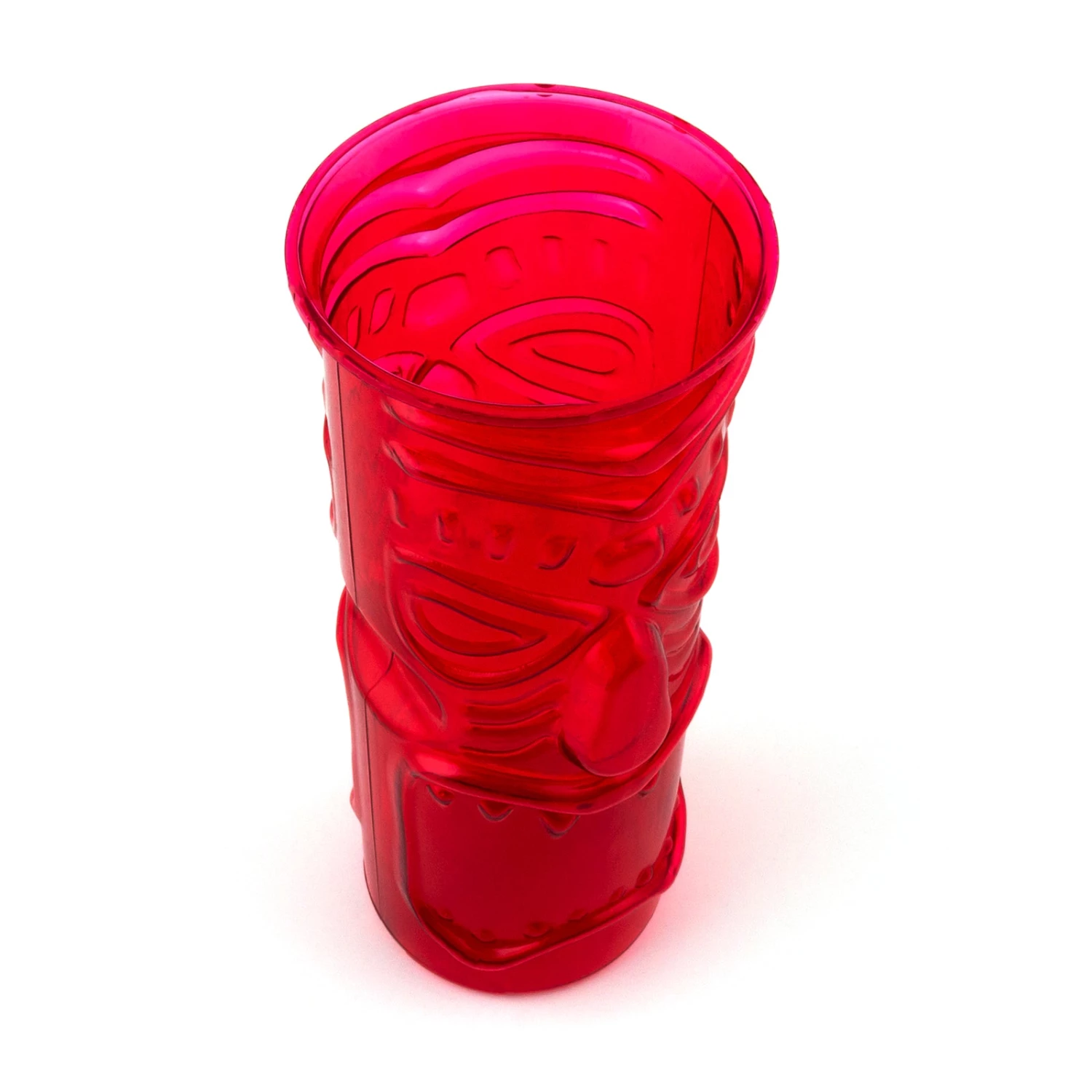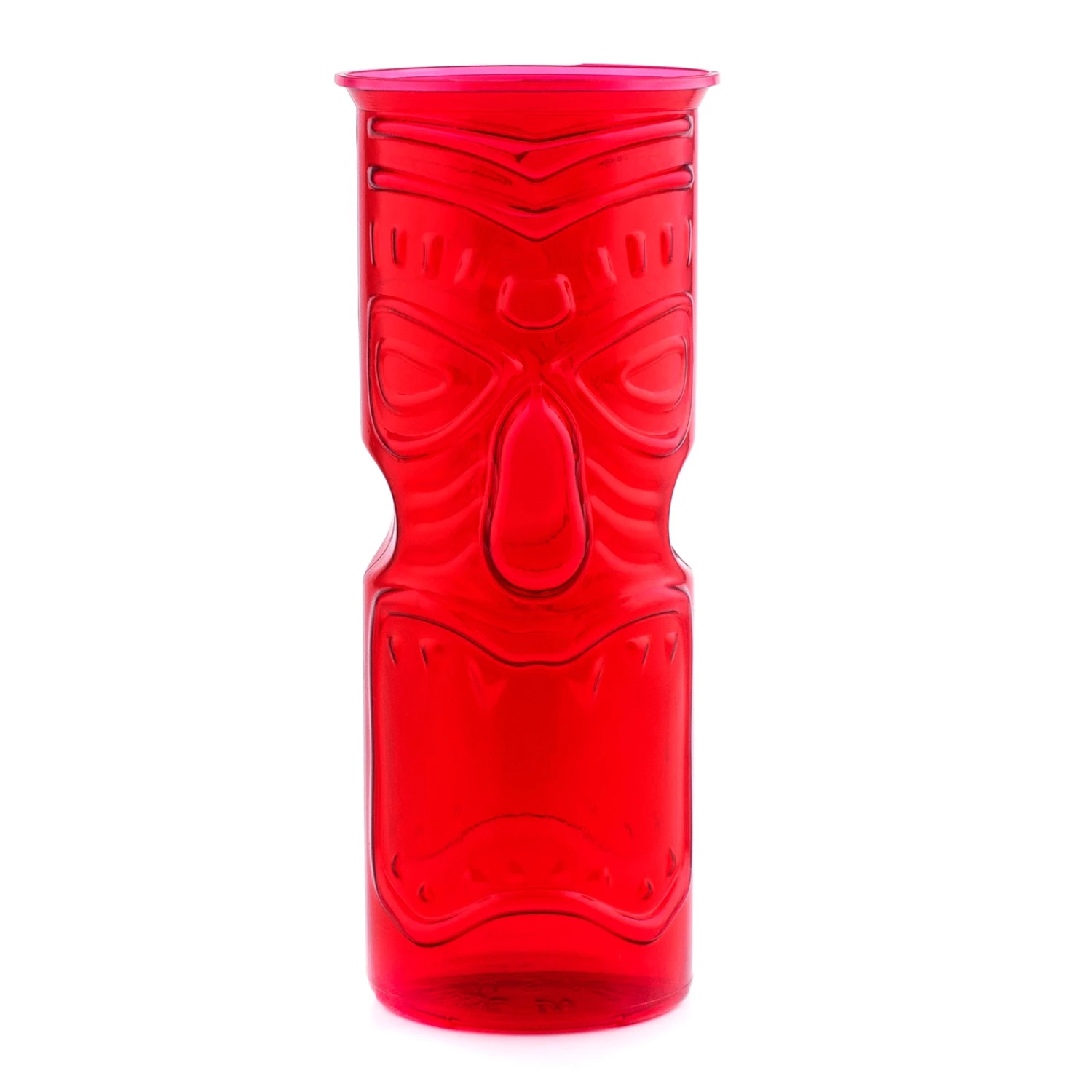 This fun tiki cup is the perfect cup to make your colorfully tropical drinks in. These cups are made of high quality durable plastic material that wont easily break and they feature an embossed tiki face design showcasing a slightly transparent red color. This cup is 8 1/2 inches in height with a 3.25 inch diameter and can hold 32oz of liquid. The tiki mixology trend is showing no signs of slowing down and we feel it is here to stay. Stock up on these great reusable tiki cups and enjoy one of the best movements in modern mixology.