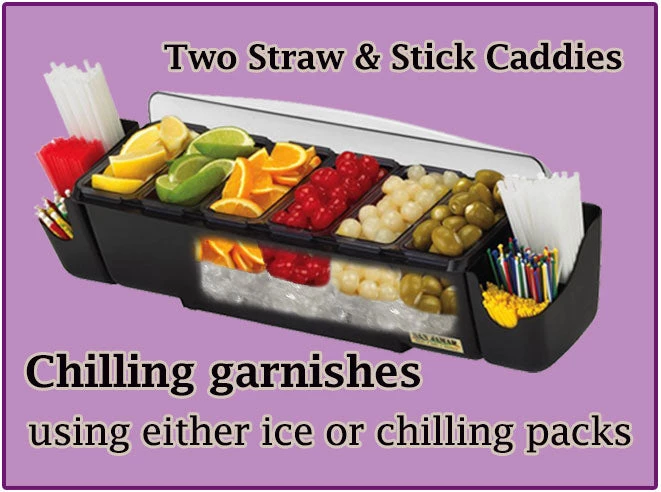 Integrated snap–on caddies store straws, stirrers and picks. The new 2 quart “deep tray” option is double the capacity of competitive units. The Dome is the perfect solution for garnishes, condiments, toppings and much, much more!