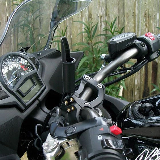 Enjoy your ride with the E Cig Rider! The easy-to-assemble patent pending design clamps onto motorcycles, scooters, boats, bicycles, ATVs and more, while holding most regular sized e-cigarettes / vapor cigarettes in a convenient, safe place. It mounts easily onto any 3/4″, 1″ or 1 1/4″ bar! The E Cig Rider is made of UV protected Polypropylene Plastic and Brass for years of use. Proudly made strong in the USA.